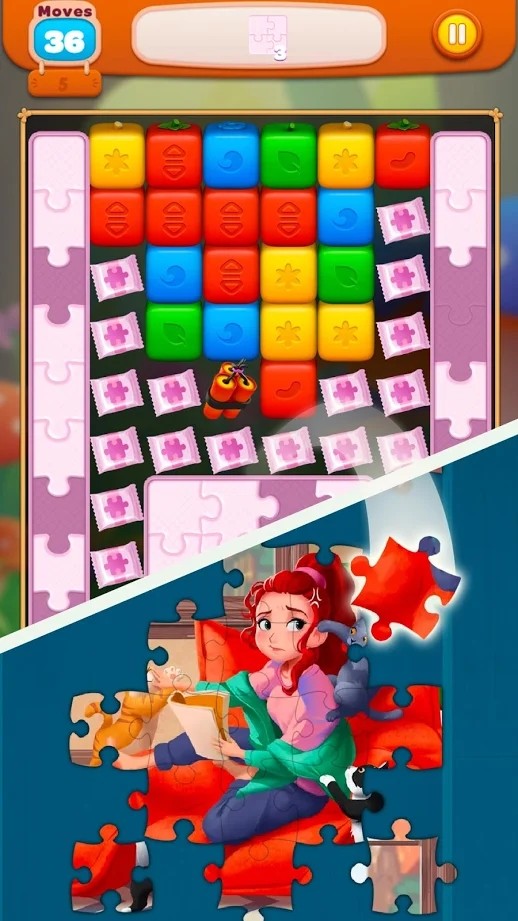 3.点击7个连接的相同水果块,获得炸弹糖果。