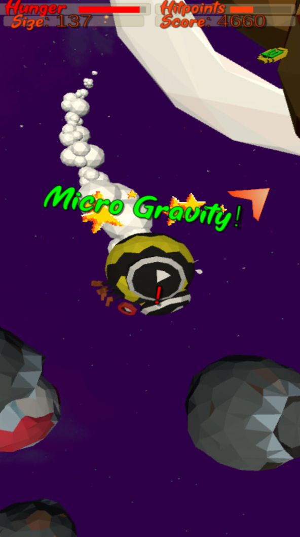 3、滑动设备以进行疯狂的屏幕扭曲操作,发射以寻找越来越大的行星,甚至是稀有的宇宙汉堡!