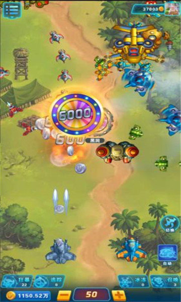 3、捡起空中的子弹和道具强化飞机,双击屏幕释放技能;