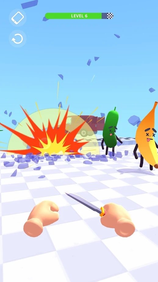 磨刀!从邪恶的蔬菜中拯救自己。切蔬菜和水果,然后迅速驶向出口。成为出色的水果切片机。