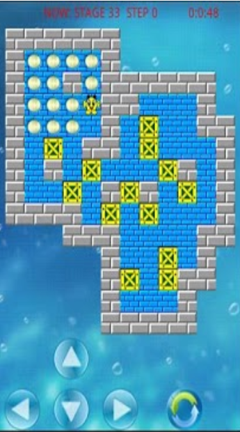 该游戏在一个狭窄的仓库里,要求将木箱放入指定位置。