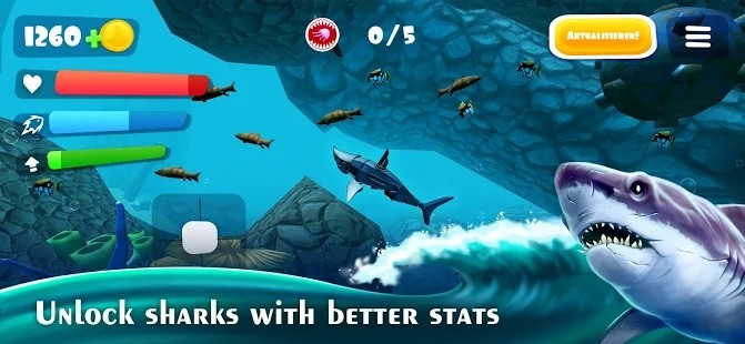 1.游戏使用了卡通风格设计为玩家展现了一个非常逼真的大鲨鱼形象。
