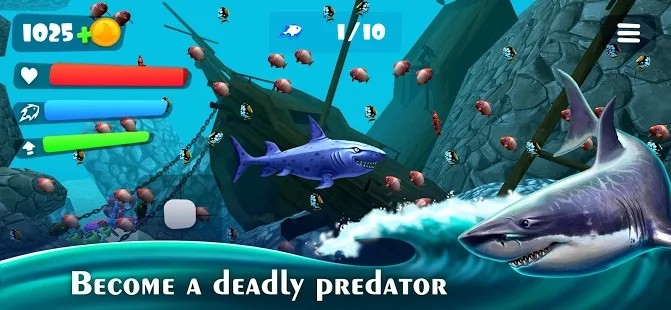 猎鲨模拟器作为一款非常精彩的动作冒险类游戏,在游戏中,玩家将变身成为一只大鲨鱼,在无尽的海洋中进行冒险,你可以尽情的去追捕比你小的生物进行捕食,使你的鲨鱼不断的变得强大,同时也要注意躲避比自己更大的生物。