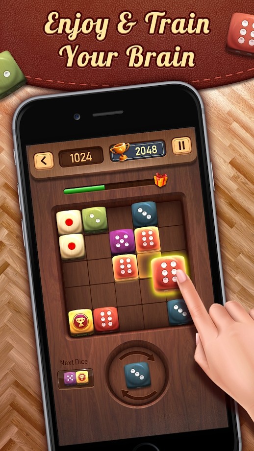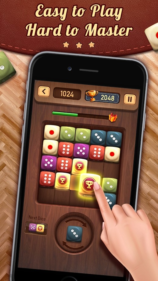 合并骰子:随机骰子游戏和数字合并谜题简单易玩,极易上瘾,同时提供增强大脑的挑战!看看这个奇妙的拼图,其中包含不同的彩色木制骰子块!