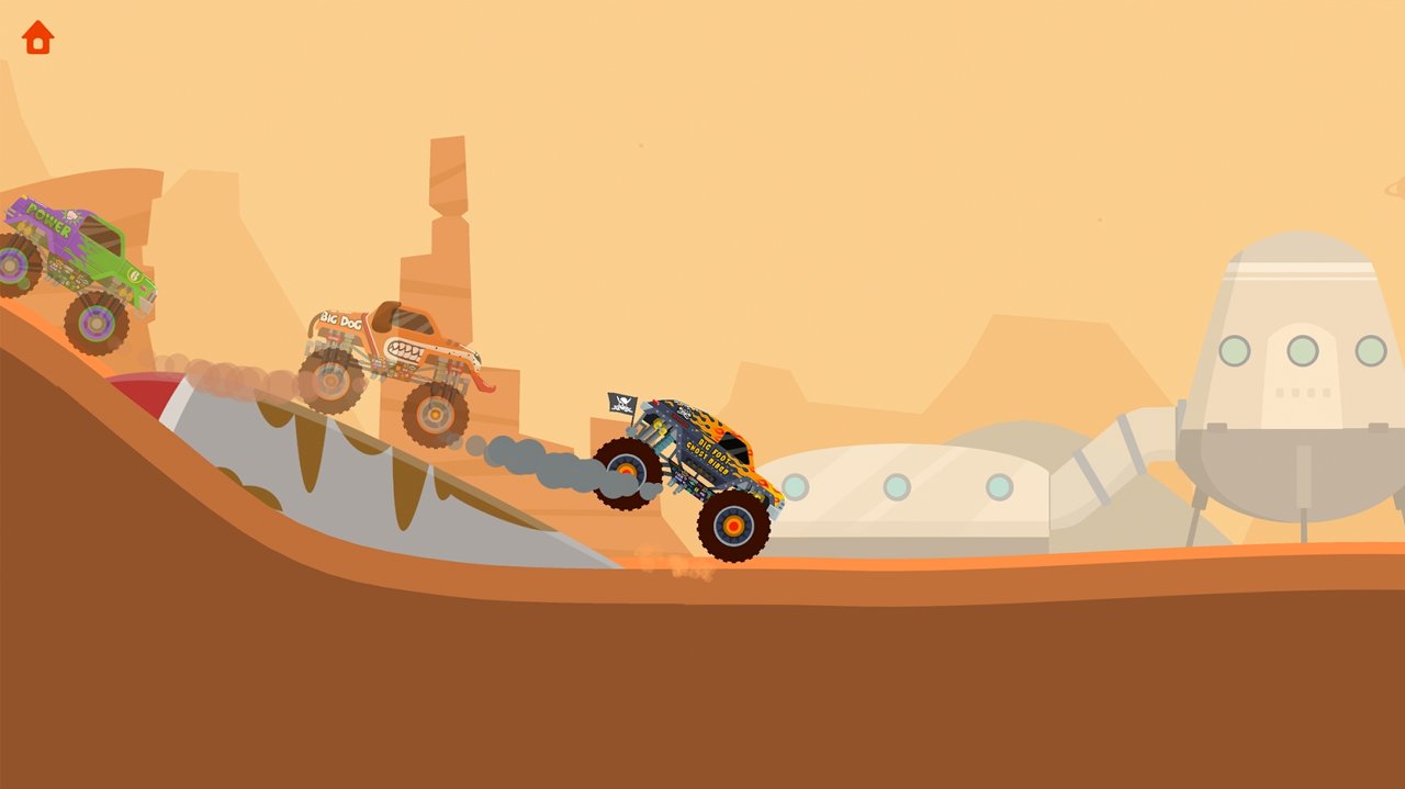 专为儿童2-8岁,怪物卡车的控制非常简单,超好玩!旅行的上,下,下,通过在这个越野怪物卡车比赛的终点线!
