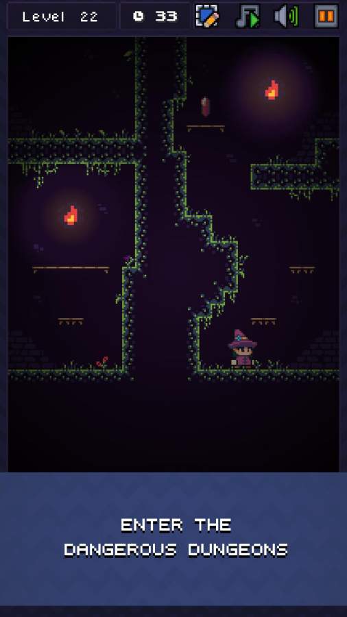 1.玩家在游戏中成为了一名魔法师,通过跳跃的方式来躲避怪物,收集宝石;