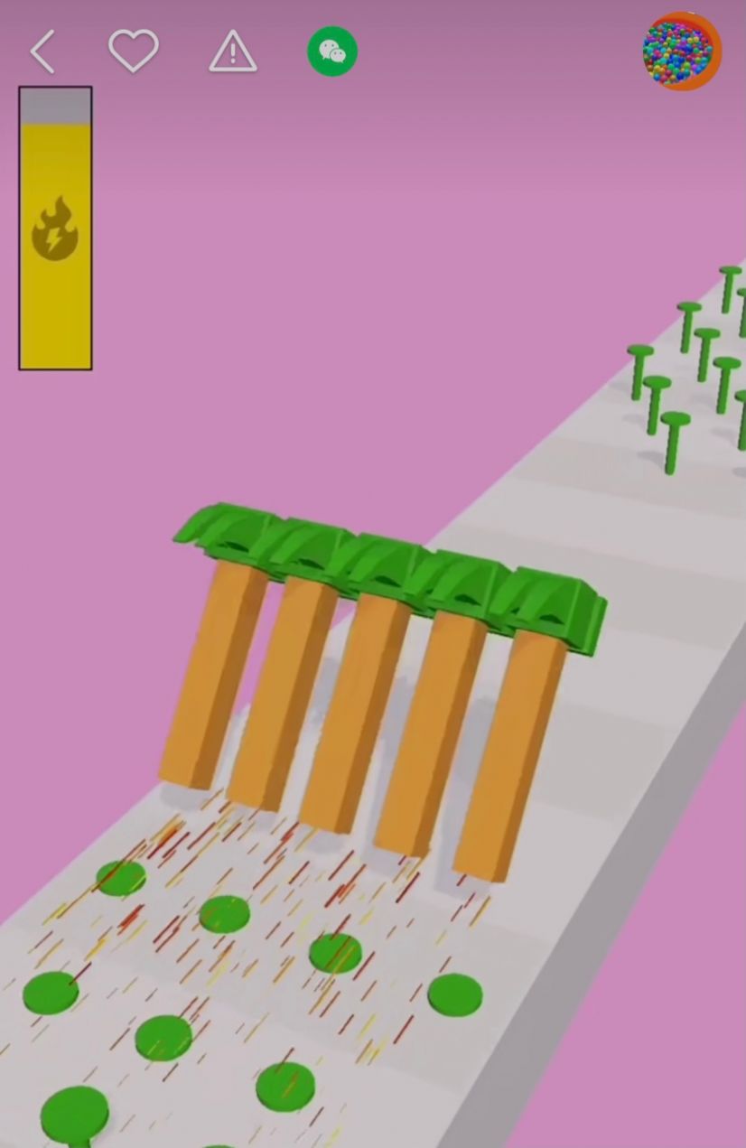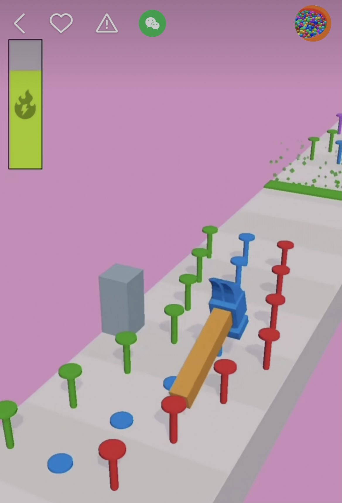 2、非常的考验你的手速,钉子的颜色是分散的,有时候宁愿错过也别敲错;
