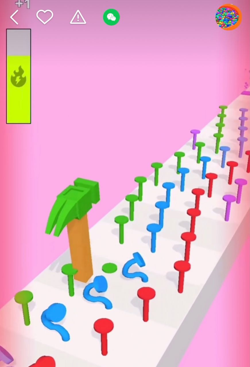 1、简单的动动手指,将相同的钉子全部敲进去,就能获得更多的奖励;