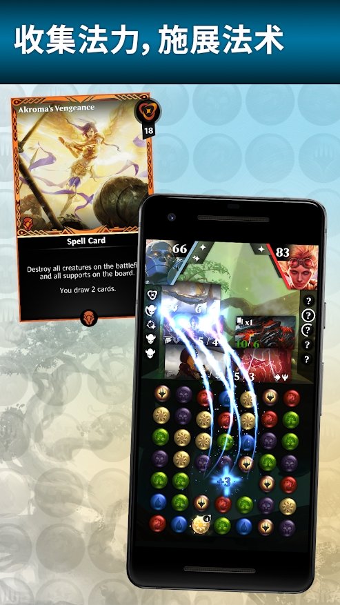 法术力宝石你的力量来源与法力核心。同时消除三个或更多宝石,积攒足够力量来施放致命咒语和强力生物。