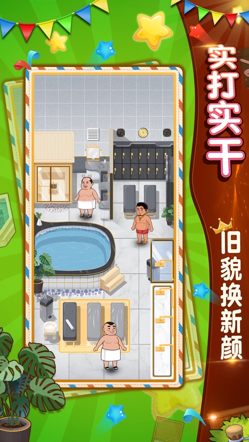 搓澡是一种享受,如果使你经营一个澡堂,你会怎么做呢?大众浴池这作为一款以浴池经营为主题手游,玩家作为老板,需要不断地开启新的场所,招募员工,为顾客服务,让顾客愿意来你这里消费,从小小的大众浴池,慢慢经营成为城市中最火爆的大浴场。
