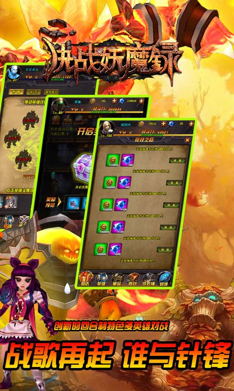 创新的回合制特色多英雄对战,实时在线畅爽PK,全程热血高能。
