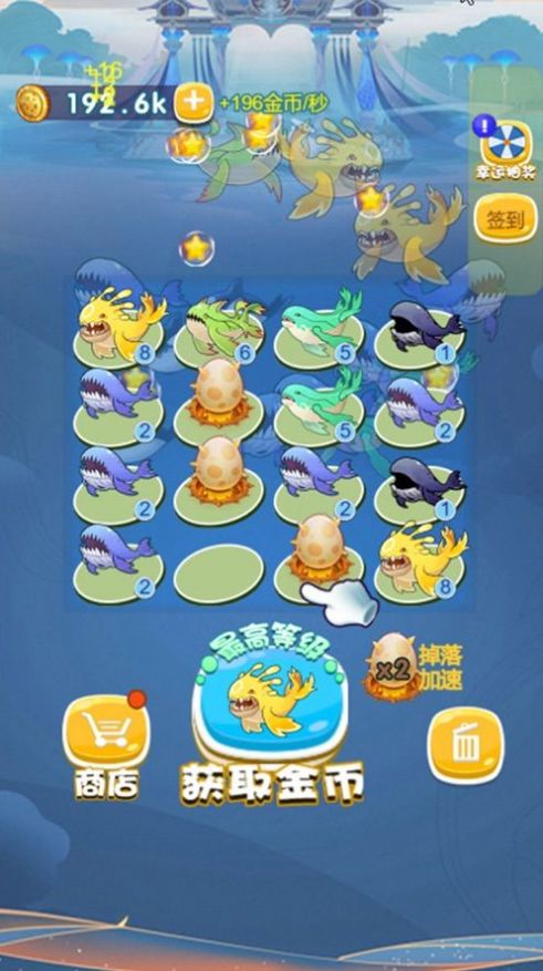玩家在游戏买幼鲲,并且将相同的幼鲲合成在一起即可获得红包奖励,除此之外还可以通过掠夺其他玩家、工厂挂机等方式获得红包奖励,