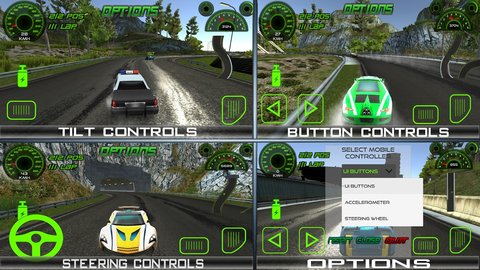 2、支持随机切换多种不同的控制器来操控你的跑车,时而倾斜或进行转向。
