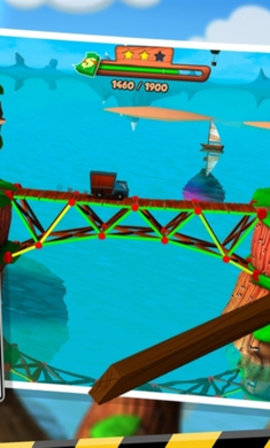 2、根据地形和预算设计出你理想的桥梁,让汽车顺利通过即可。