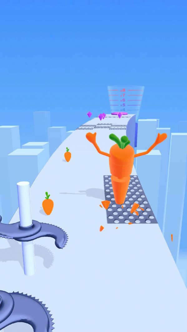 2、灵活滑动帮助你的胡萝卜躲避开危险刀刃,收集小胡萝卜不断成长壮大。