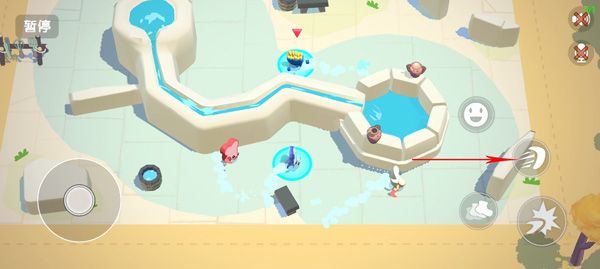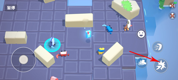 1、进入游戏之后,滑动左下角摇杆移动角色;