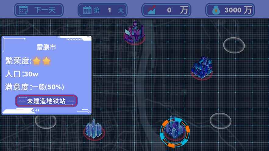 3、设计地铁路线的同时,玩家也可以参与到城市的建设中,城市的发达程度,会影响地铁建设进度。