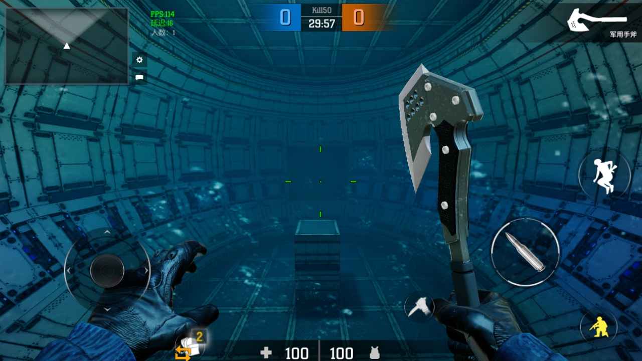 3、简单的游戏操作,点击屏幕对应的控制位置,拿起枪械开始无限扫射。