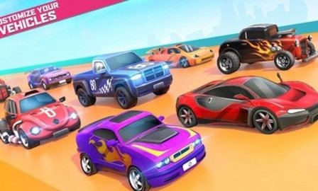 在100多个疯狂的物理赛车场上,竞赛10+辆热车。