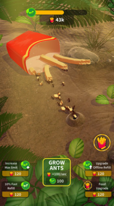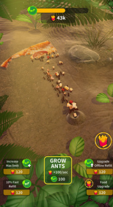 1、玩家还能不断的升级巢穴,让这里的规模更加庞大,能够同时容纳更多的蚂蚁;
