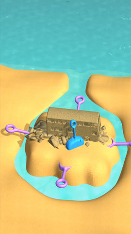1、游戏取景在沙滩上,使用各种工具、交通工具去完成你的建造房屋任务;