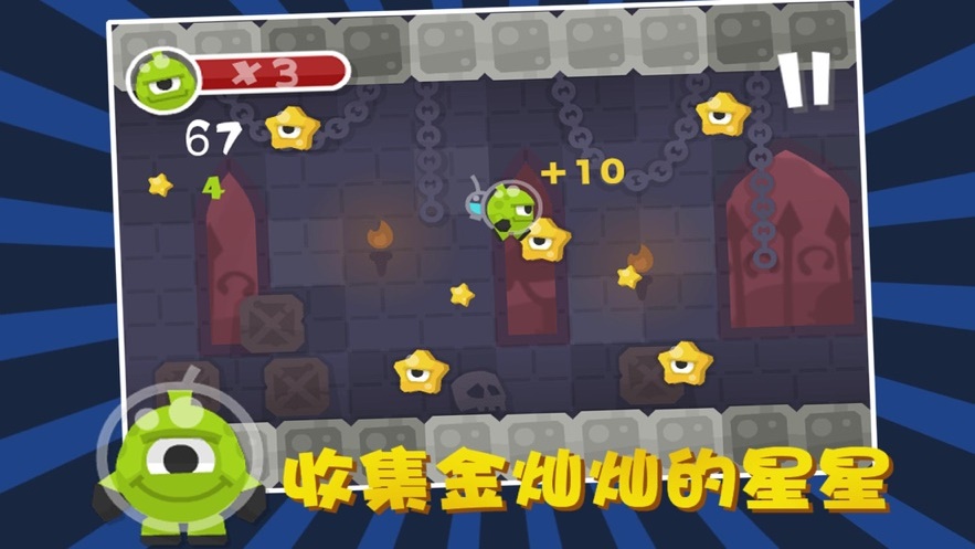 太空跑酷这款跑酷游戏的玩法超级独特,玩家只需要通过点击屏幕就可以控制外星人飘起来,通过这种方式来躲避沿途的障碍物,丰富多样手游关卡给玩家带来了更多精彩的体验,让玩家收获更多的欢乐,赶快试一试吧。