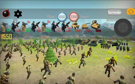 你有一支强大的军队。您有武装士兵,坦克,悍马和火箭坦克。如果您有足够的钱,可以通过单击战场来部署它们。您可以通过杀死僵尸来赚钱,并且可以定期从政府那里赚钱。因此,您必须超级聪明地花费您的资金,并且确实必须聪明地部署单位以阻止他们的攻击。有时您需要牺牲士兵以减慢僵尸袭击的速度。僵尸只能被士兵杀死。您不能将坦克,悍马车或火箭箱用于对付僵尸。您可以对他们的总部使用它们。