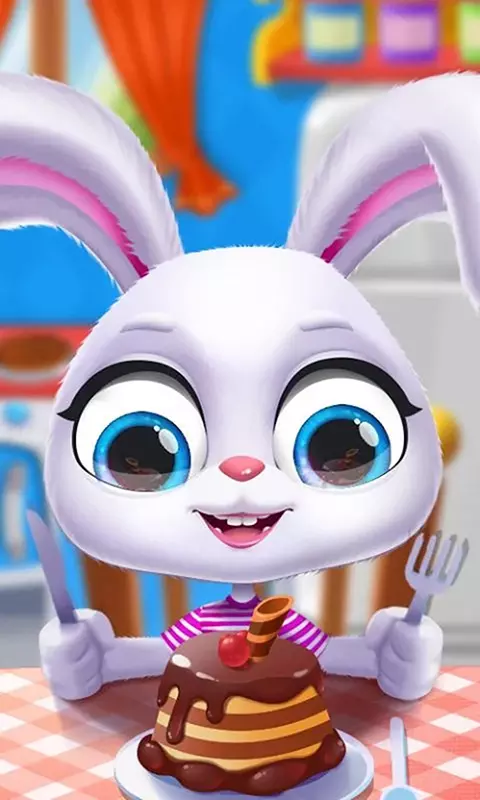 2、小朋友们可以开心跟兔子宝宝做好朋友,陪它一起玩乐洗澡吃饭买菜做饭;