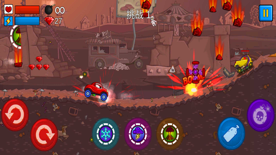 这款游戏玩起来非常的嗨,你能够在闯关中解锁各种类型的赛车,然后根据场地的需求和战斗需求进行改装,干掉你的对手,获得更多的材料和资源,一步步强化你的战车,在战斗中取得最为耀眼的成绩!