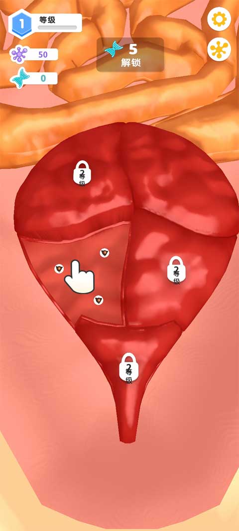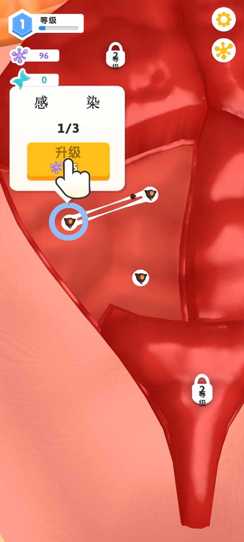 4、发展到后期,你会察觉到膀胱周边出现黑色物质,这便是病毒。此时,你必须对细胞的连接方式加以调整,唯有如此,方能成功抵御病毒的侵袭。