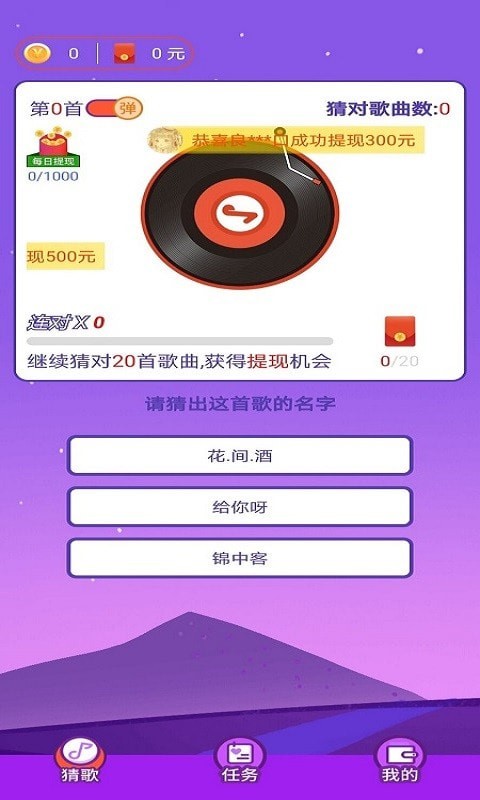 多赚宝猜歌游戏作为一款深受大家欢迎的猜歌答题领奖励的闯关游戏,超多的音乐题库带来更多的欢乐,根据音乐的类型选择不同的关卡,你能选择自己擅长的曲目参与猜歌答题的挑战,丰富的题目类型带来更多的欢乐,多多的尝试去找到正确的答案,完成任务领取惊喜的红包奖励。