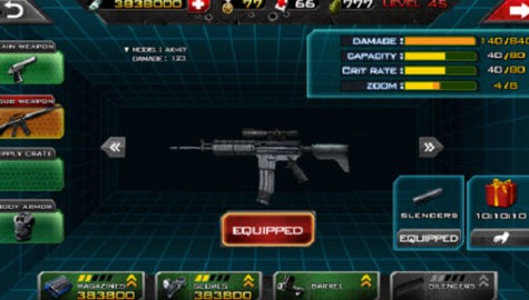 合理搭配枪支,升级你的装备和经验,血量、消声器、瞄准器一个都不能少