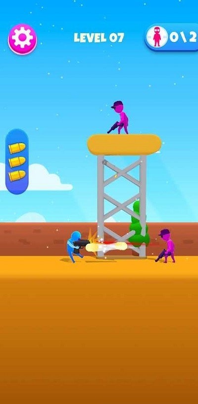 1、游戏的趣味性很足,在舞台上火柴人的子弹会反射,所以也可以利用地形的优势来消灭敌人。