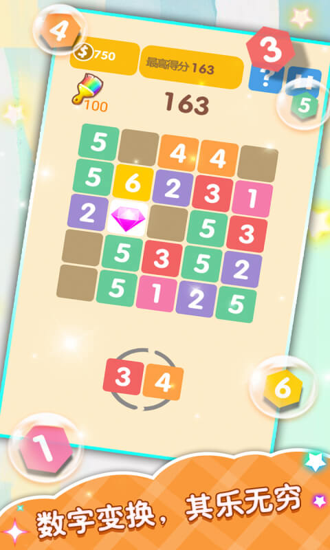 合合乐的玩法简单易懂,但极具挑战性。玩家需要将屏幕下方随机出现的数字方块拖动到上方的2048方块格中,当三个相同数值的方块相邻时,即可合并成一个更高数值的方块。当三个数值为6的方块成功合并后,即可合成宝石,宝石可以消除周围3*3区域的方块,为玩家提供更多策略选择。游戏没有时间限制,玩家可以自由发挥,尽情享受数字消除的乐趣。无论是想放松心情,还是挑战自我,合合乐都能满足你的需求。