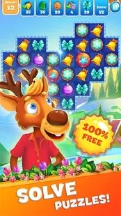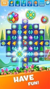 交换,拖动和清除可爱的碎片,例如树,三叶草,钟声和小玩意,蛋糕或雪花。进行4或5匹配,以创建功能强大的炸弹和加电装置。您将获得饼干,糖果和苏打水的奖励。