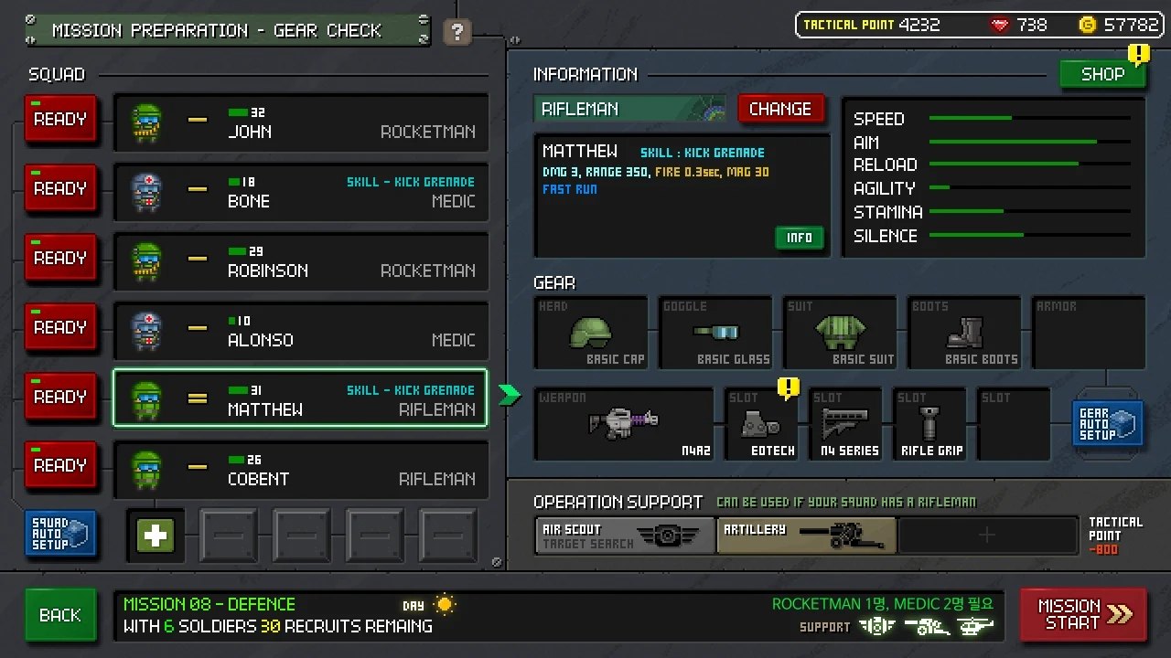 使用Rifleman,Rocketman,Sniper,Medic,Specialist,Sapper组成的6个类进行各种游戏。