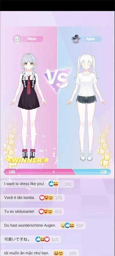 3、游戏场景设定在沙滩,玩家需依照要求协助女孩进行装扮。装扮完成后点击提交,完成PK还能够获取金币。