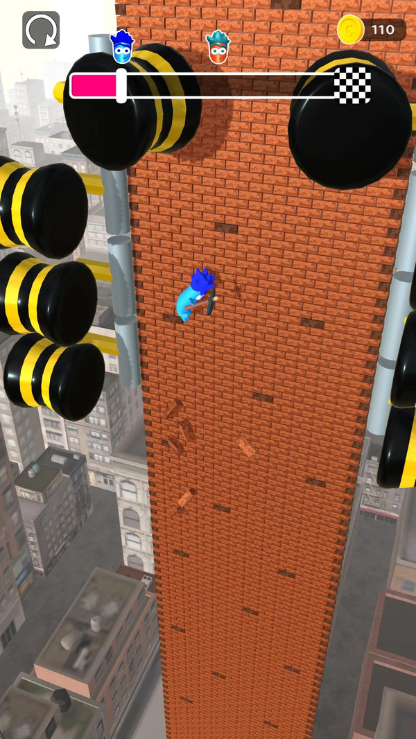 高墙坠落手游是一个很多玩家们都在玩的比拼手速游戏,这里的玩家挺多的,各位在玩的时候,一起比赛吧,看谁能赢得最终的胜利,这游戏的时间挺自由的,随时来玩加入,你会发现收获的欢乐无限,这游戏的操作就是动动你的手指,去不断攀岩,当你抵达终点的时候,就可以赢得胜利了哦。