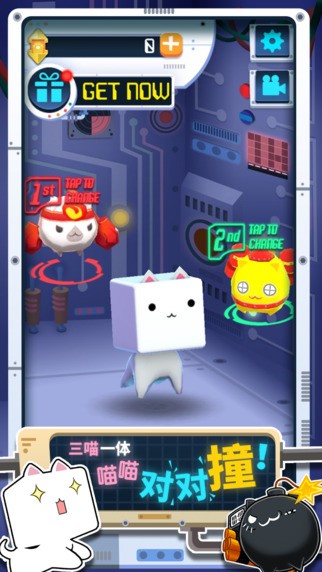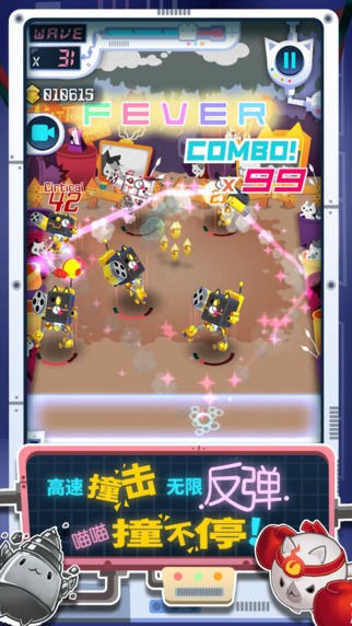增加收集金币喵球的能力,挑战太空各种黑势力机械军团BOSS!