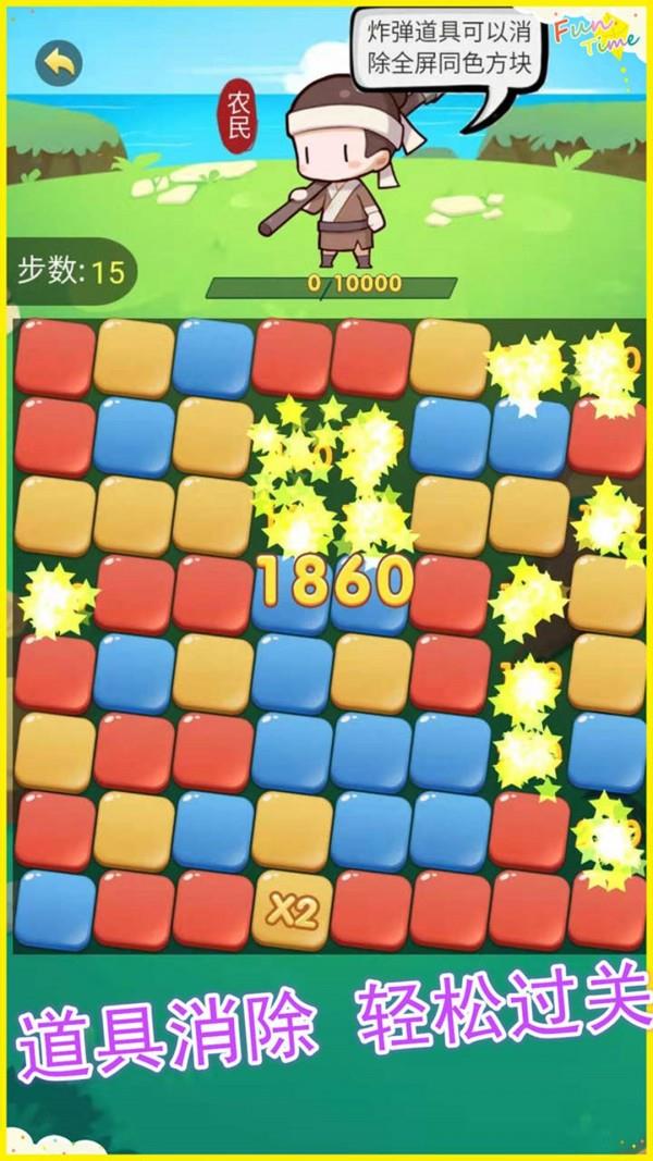 这作为一款充满魔性手游,让玩家爱不释手,背景音乐设定的非常欢快,让玩家心情超级愉悦,在进行消除的时候,玩家只需要把相同的方块放在一起,就可以进行消除就能获得大量的积分,关卡越往后难度越大,所对应的奖励也就越丰厚,喜欢的家人们赶快来下载吧。