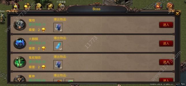 2、击杀boss获得材料,集合多种材料就可以合成高级装备,合成的几率很容易成功的。