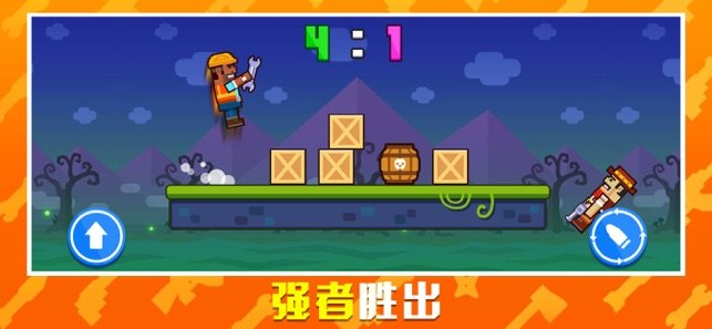 枪炮奇兵是一款趣味的射击对战类手机游戏,游戏中融合多种素材使游戏整体具有非常强的乐趣。游戏操作简单只需要通过跳跃和射击即可完成操作,自动瞄准对方保证绝对的精准。玩家需要通过跳跃躲避障碍物在前方射击路线通畅的情况下集中对方,集中地次数越多则最后获得分数越高者胜利。