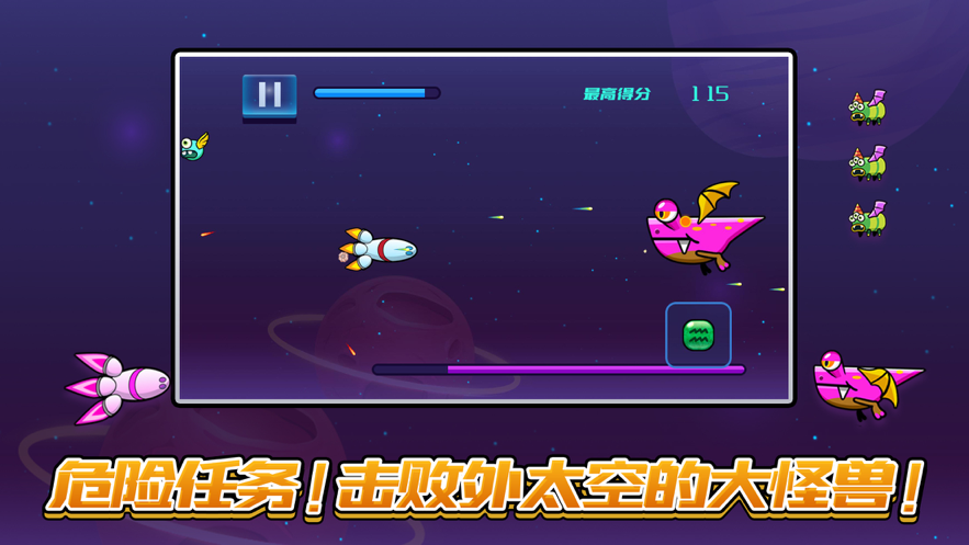 滑动特攻队驾驶的飞船,让子弹射击出没的怪兽;