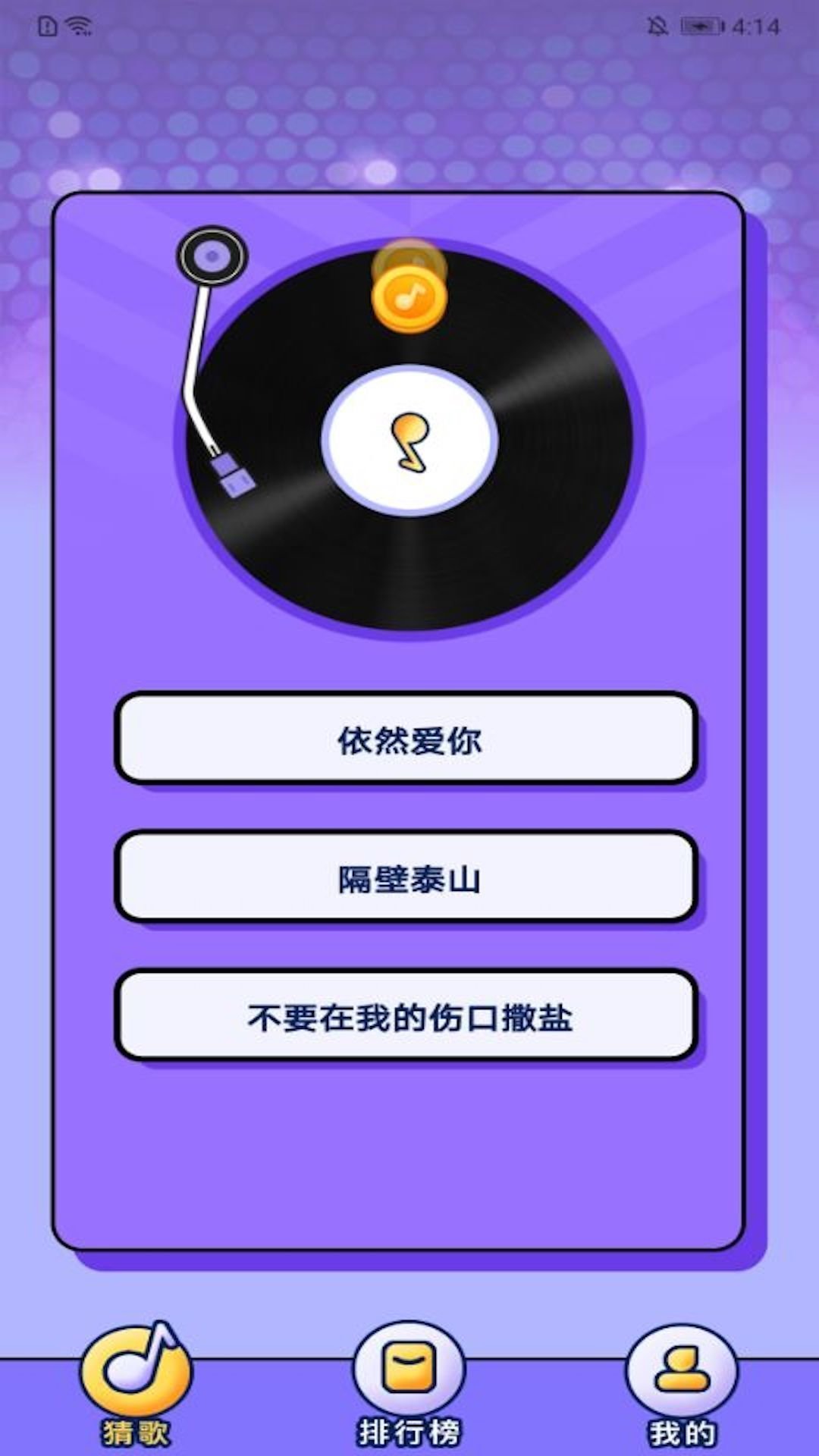 闯关模式:根据一首歌猜一首歌的名字,猜对过关。