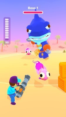 1、这款手游有着超多精心设置的关卡,简单上瘾的游戏操作玩法,玩家只需要动动手指就能享受到击打老板的快感,在这里玩家可以尽情的射击,利用强大的火力来让老板站不起来