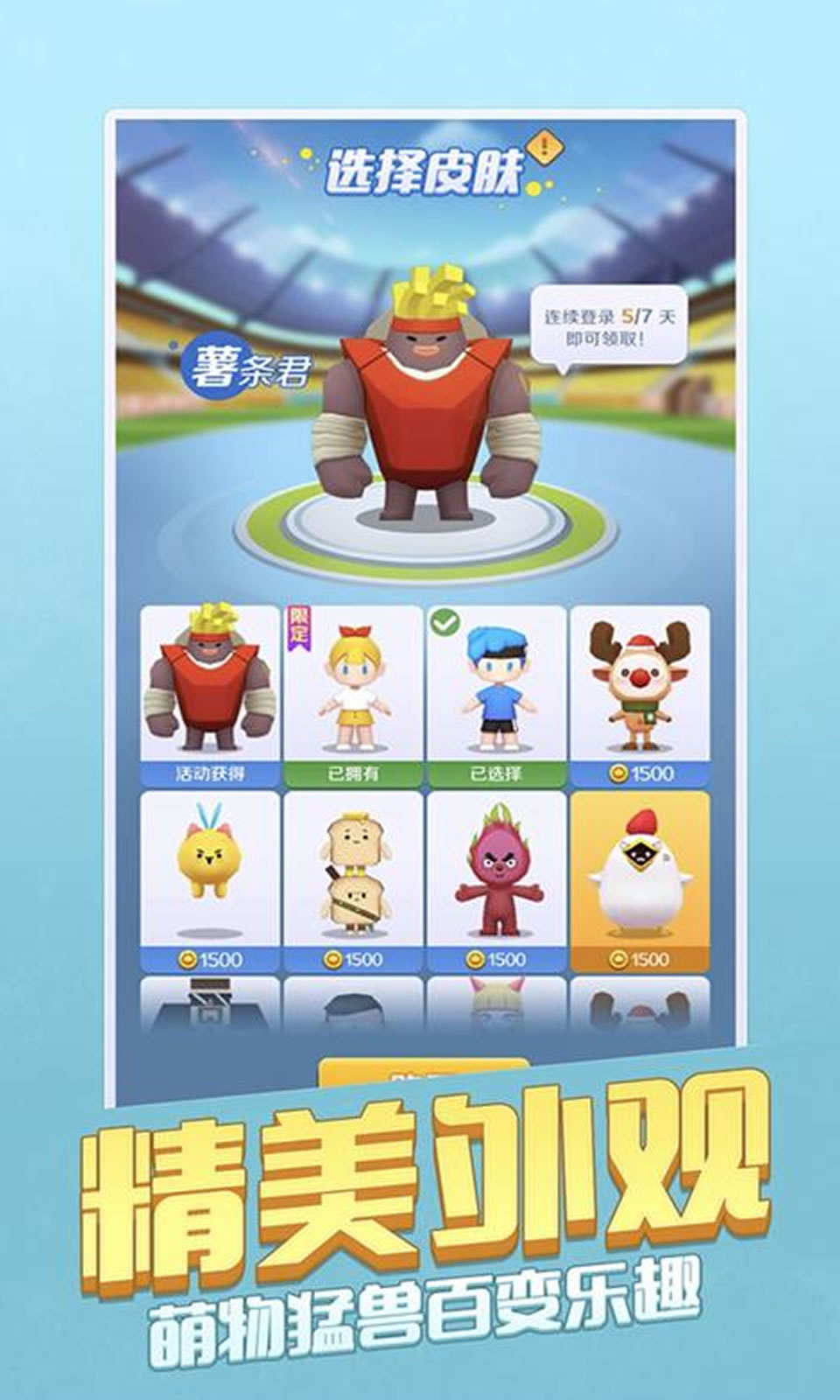 1、各种有趣的人物皮肤可以更换,让你在人群中成为最闪亮的崽,万众瞩目!