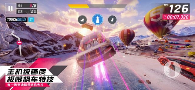 2、用一根手指控制车辆的前部漂移,游戏的操作非常简单易用,新手就能上手。