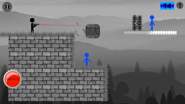 化身为火柴人,不断地进行射击闯关。火柴人激光枪作为一款火柴人题材的射击闯关游戏,在这款在这个游戏里面有着非常简约的画面设计风格,全程都是黑白画风,逼真的场景以及音效能够带给玩家更纯粹的射击体验,游戏操作简单,只需要通过按钮就能够灵活的控制自己的角色,消灭所有的敌人。