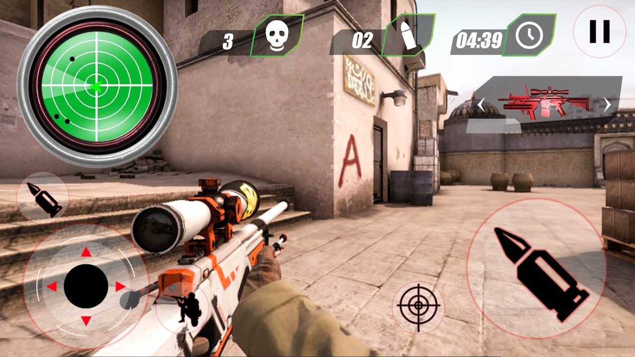 1、解锁包括狙击步枪在内的超酷武器,以风格击倒敌人,根据您的喜好自定义运动灵敏度,声音,血色等;