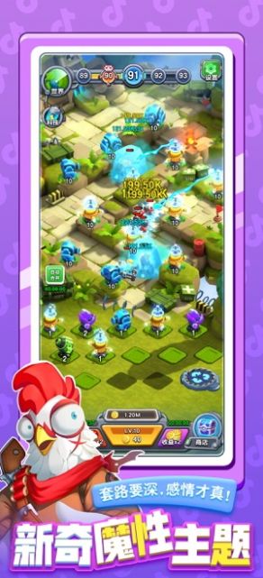 6、无需大量的手动操作,你只需要简单的合成升级你的炮塔就可以体验爽快刺激的塔防战斗